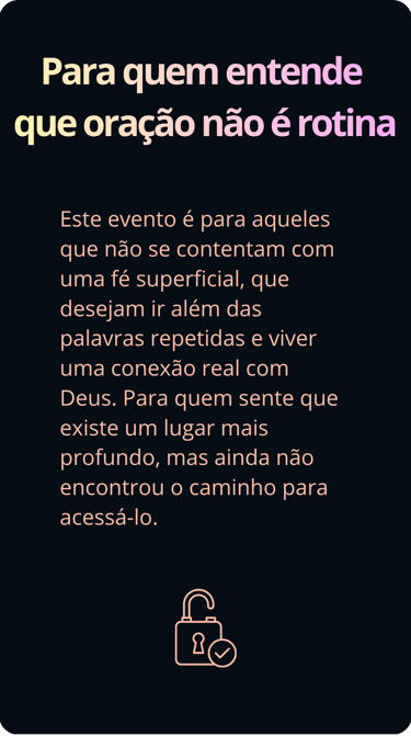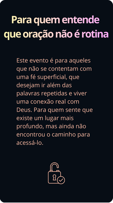 A Escola de Oração, portanto, não surge como um evento comum, mas como uma resposta a essa visão. Um ambiente estruturado para conduzir cada participante a níveis mais profundos de acesso espiritual, através de um mapa claro, prático e fundamentado na vivência. Sob sua liderança, o projeto reflete equilíbrio entre ensino, prática e experiência, unindo momentos de oração individual e coletiva com direção e propósito.